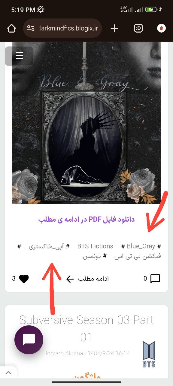 برای مثال اگه دنبال فیکشن آبی و خاکستری میگردین، کافیه زیر یکی از پست های آبی، روی برچسب اسمش حالا یا فارسی یا انگلیسیش بزنید: